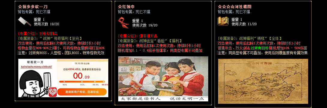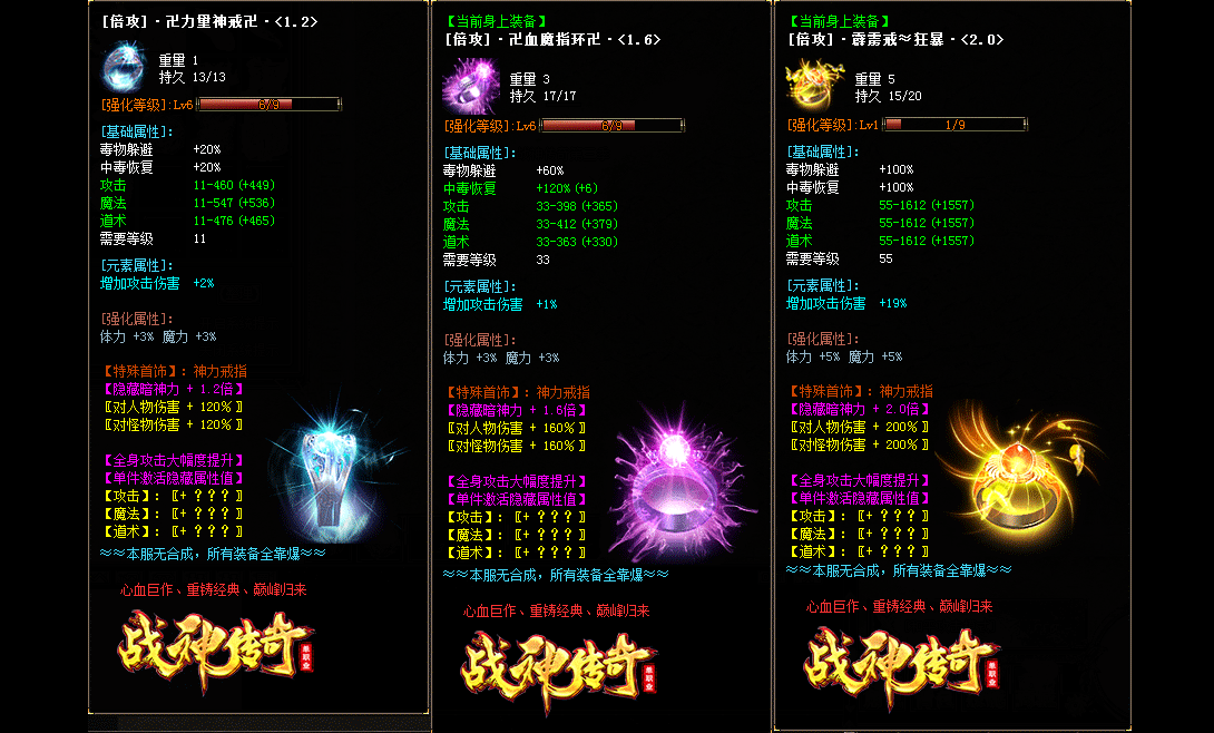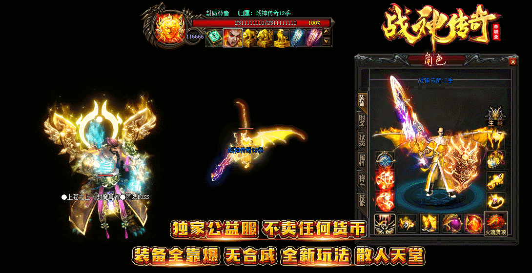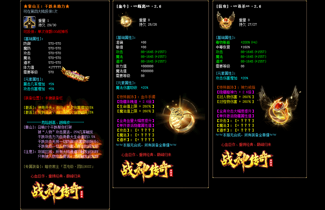 - 本服无合成,所有装备全靠怪物爆出,赞助点所有怪掉落。